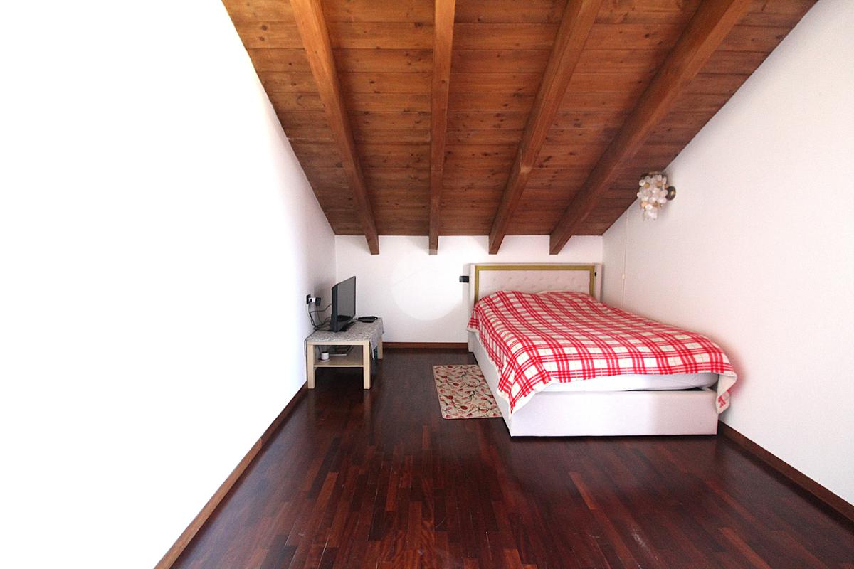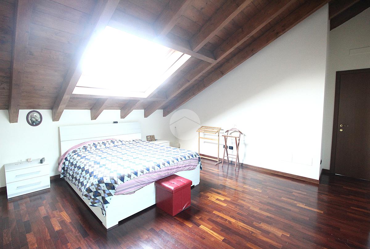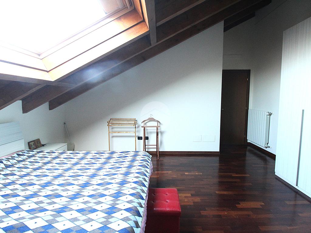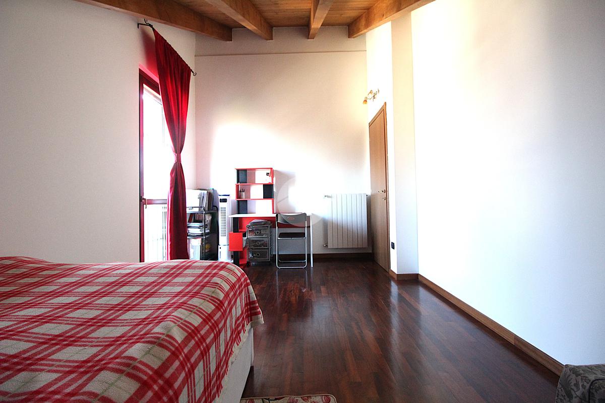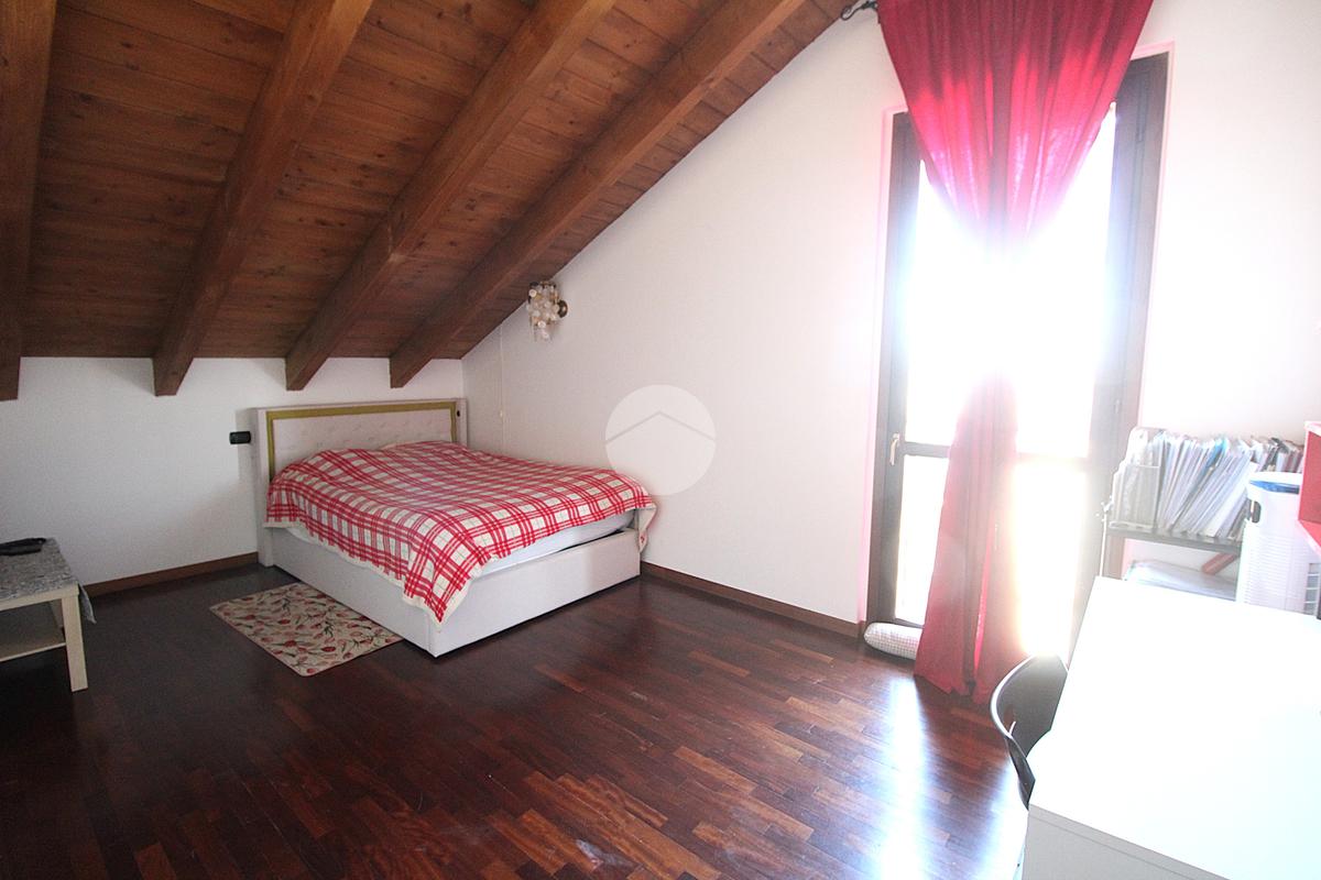 Tramite l’elegante scala interna si accede al piano mansardato, caratterizzato da travi a vista, composto dalla camera matrimoniale, dalla cameretta e dal bagno finestrato accessoriato dalla vasca da bagno.