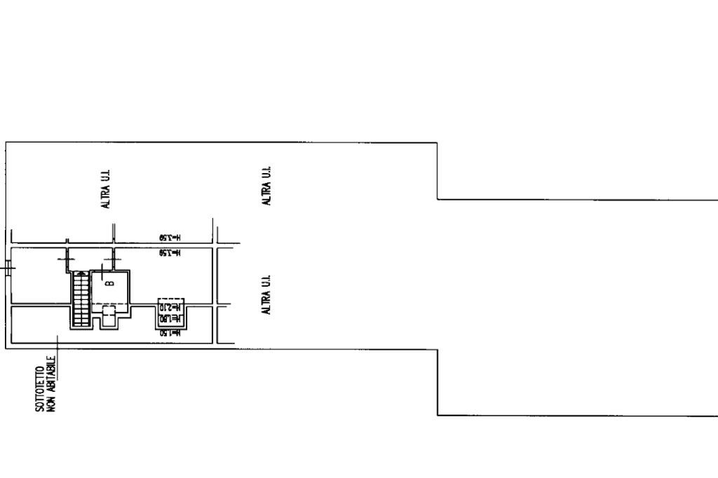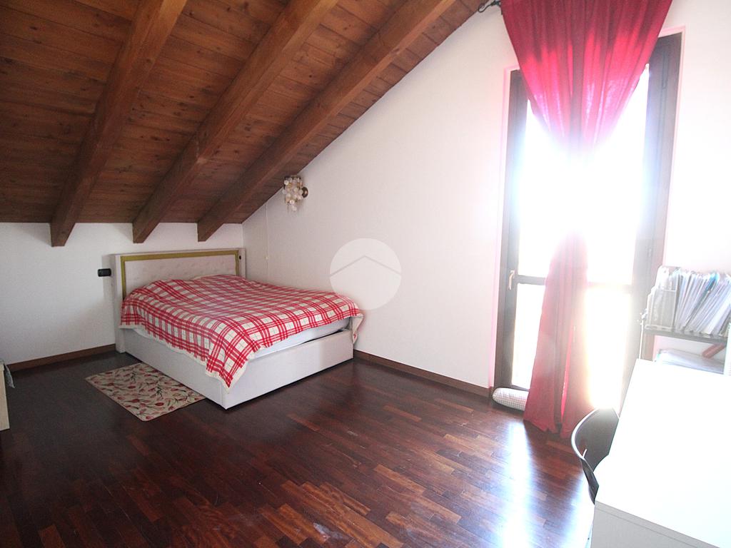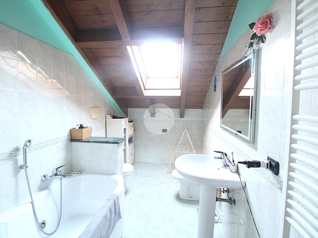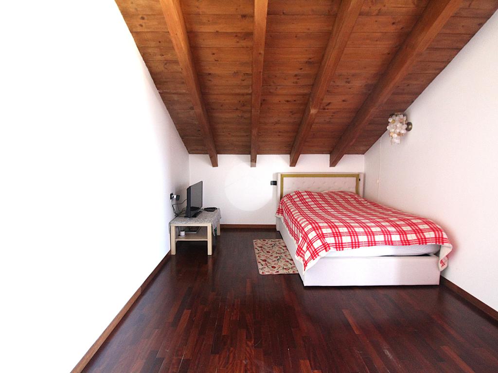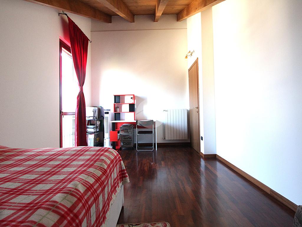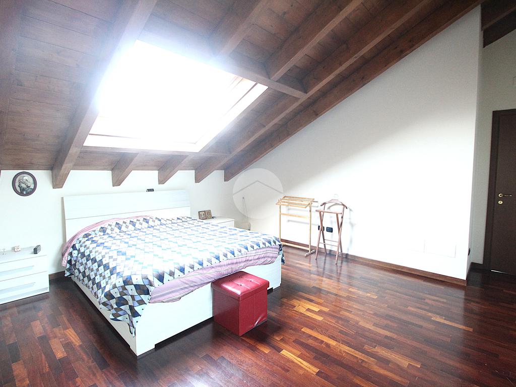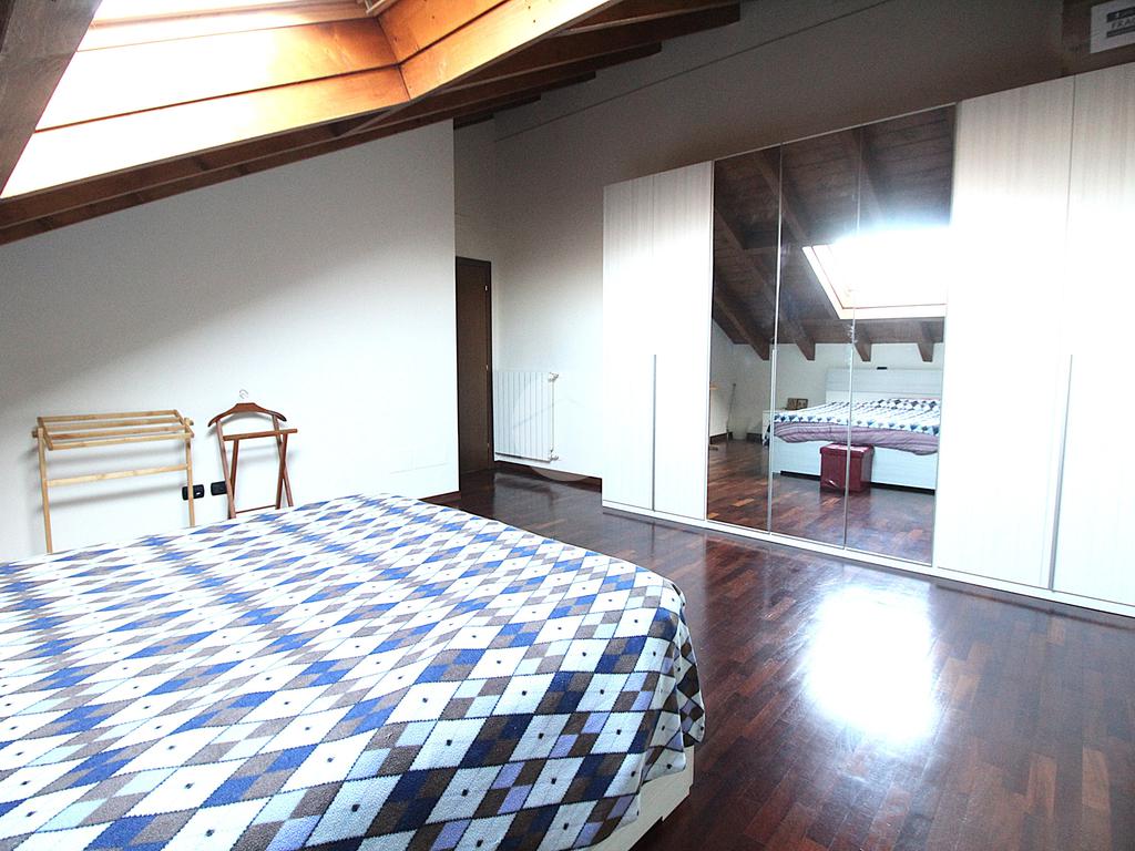 Tramite l’elegante scala interna si accede al piano mansardato, caratterizzato da travi a vista, composto dalla camera matrimoniale, dalla cameretta e dal bagno finestrato accessoriato dalla vasca da bagno.