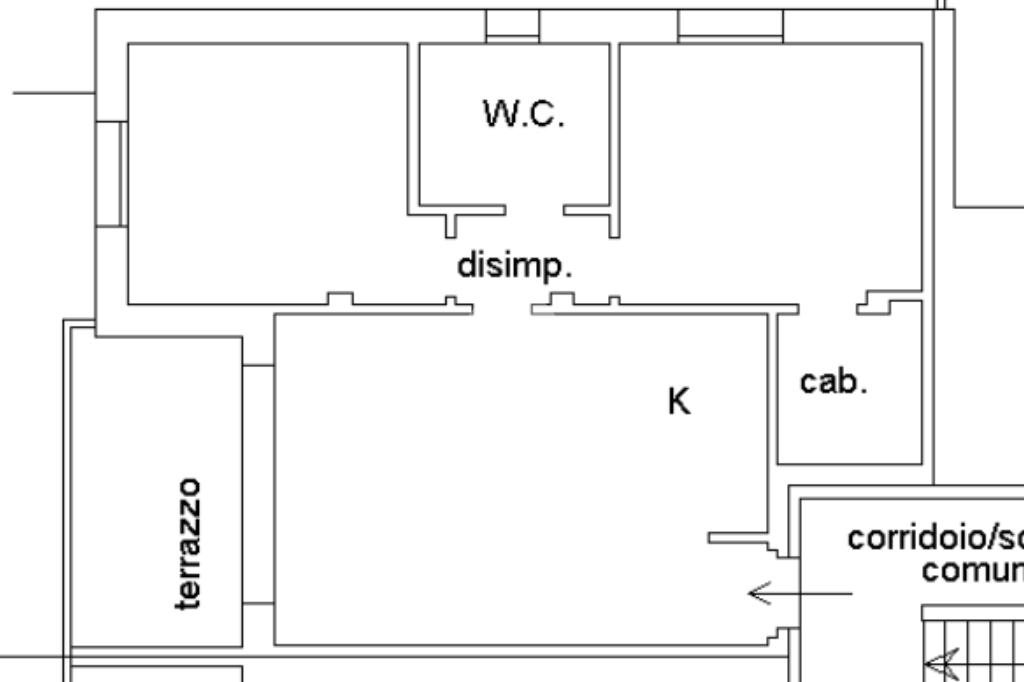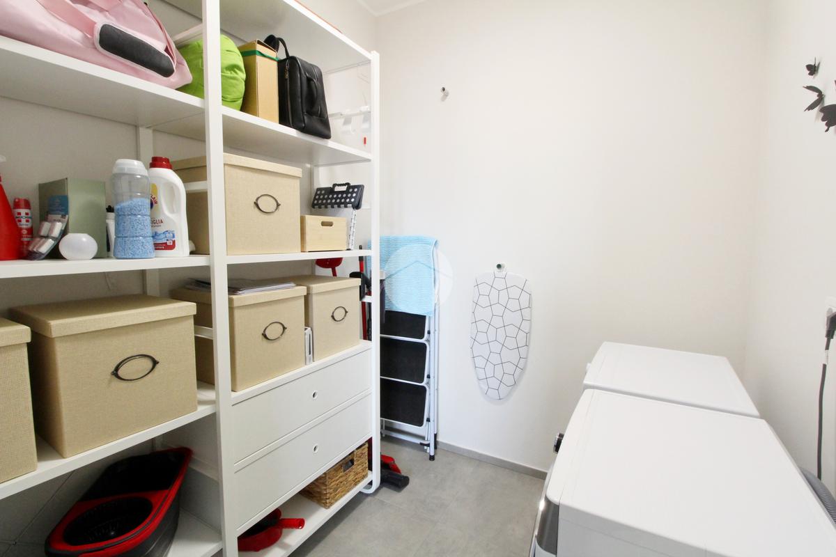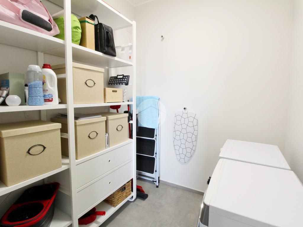 Attraverso il disimpegno si accede alla zona notte, composta dalla camera matrimoniale con locale lavanderia (predisposto per la realizzazione di un secondo bagno), dalla cameretta e dal bagno finestrato completo di box doccia.
