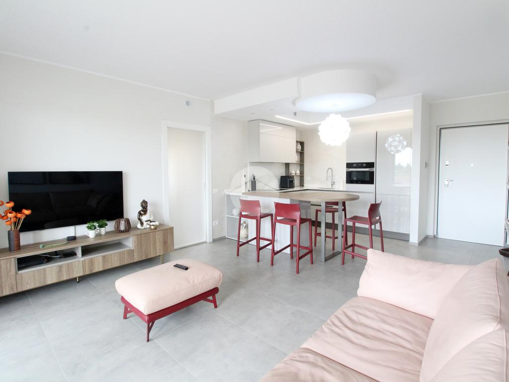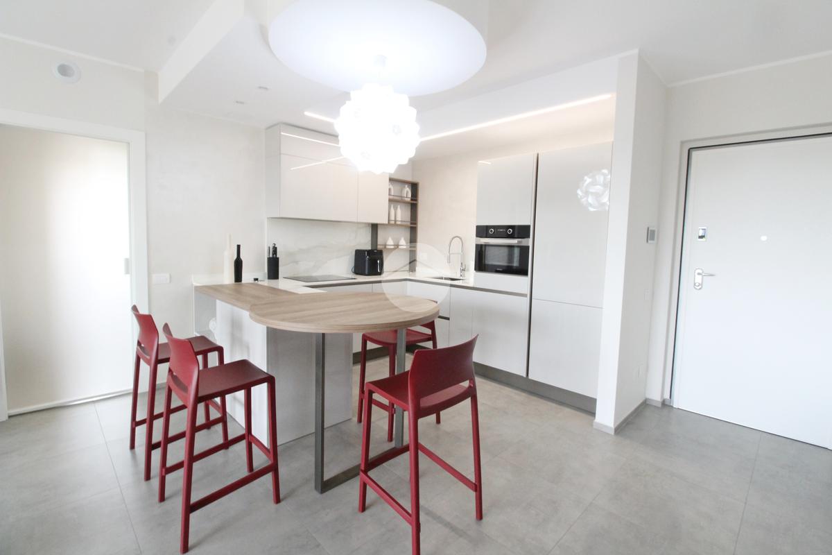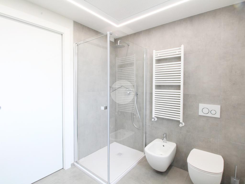 Rifiniture: porta blindata domotica, porte interne a scomparsa, tapparelle elettriche, antifurto, riscaldamento e raffrescamento a pavimento, ventilazione meccanica controllata VMC, serramenti in pvc di ultima generazione. L’intero appartamento è dotato di tecnologia domotica.