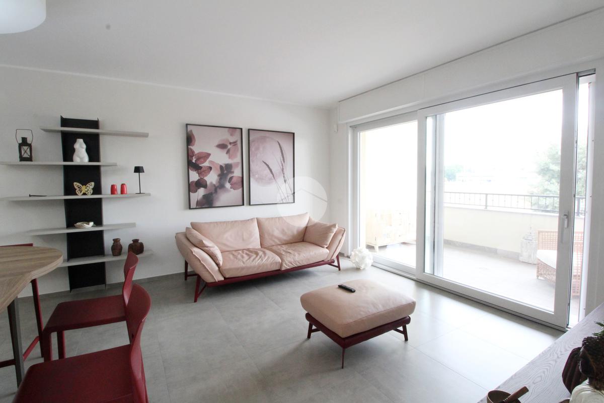 L’ingresso avviene nella luminosa zona giorno con angolo cottura, caratterizzata da un accesso diretto al terrazzo esposto a sud-ovest, ideale per essere sfruttato come spazio esterno vivibile.