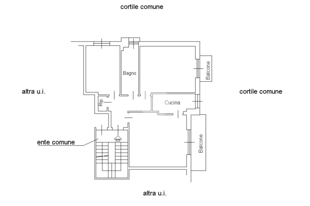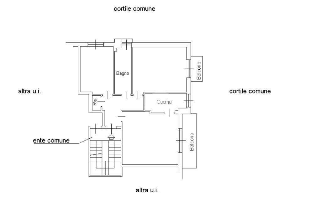 L’ingresso è nel disimpegno che conduce alla zona giorno dove troviamo il soggiorno con l' angolo cottura e uscita sul balcone con esposizione verso est.
