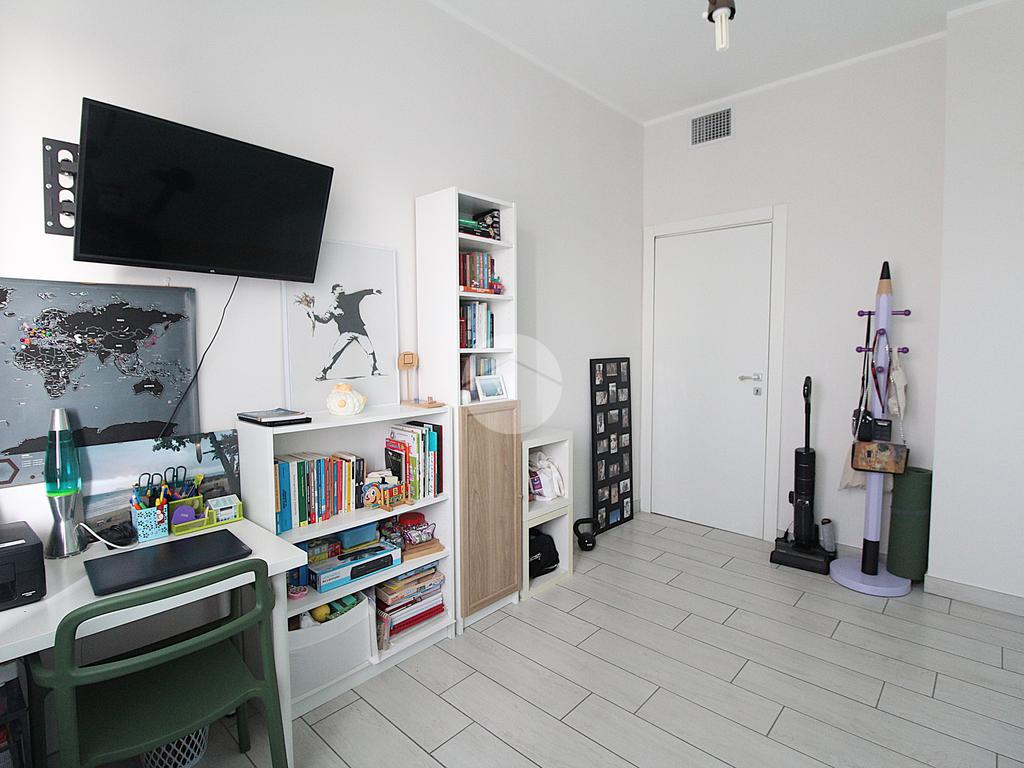 La zona notte è composta dalla cameretta, dal bagno con box doccia e dalla camera matrimoniale.
